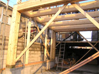 先日、話をしていました木造門型ラーメン構造のY様邸増築、改修工事で、本日上棟です。
