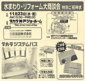 会場 : タカラ神戸ショールーム 神戸市須磨区弥栄台3丁目 15-5(神戸流通センター内) TEL:078 - 795 - 4780