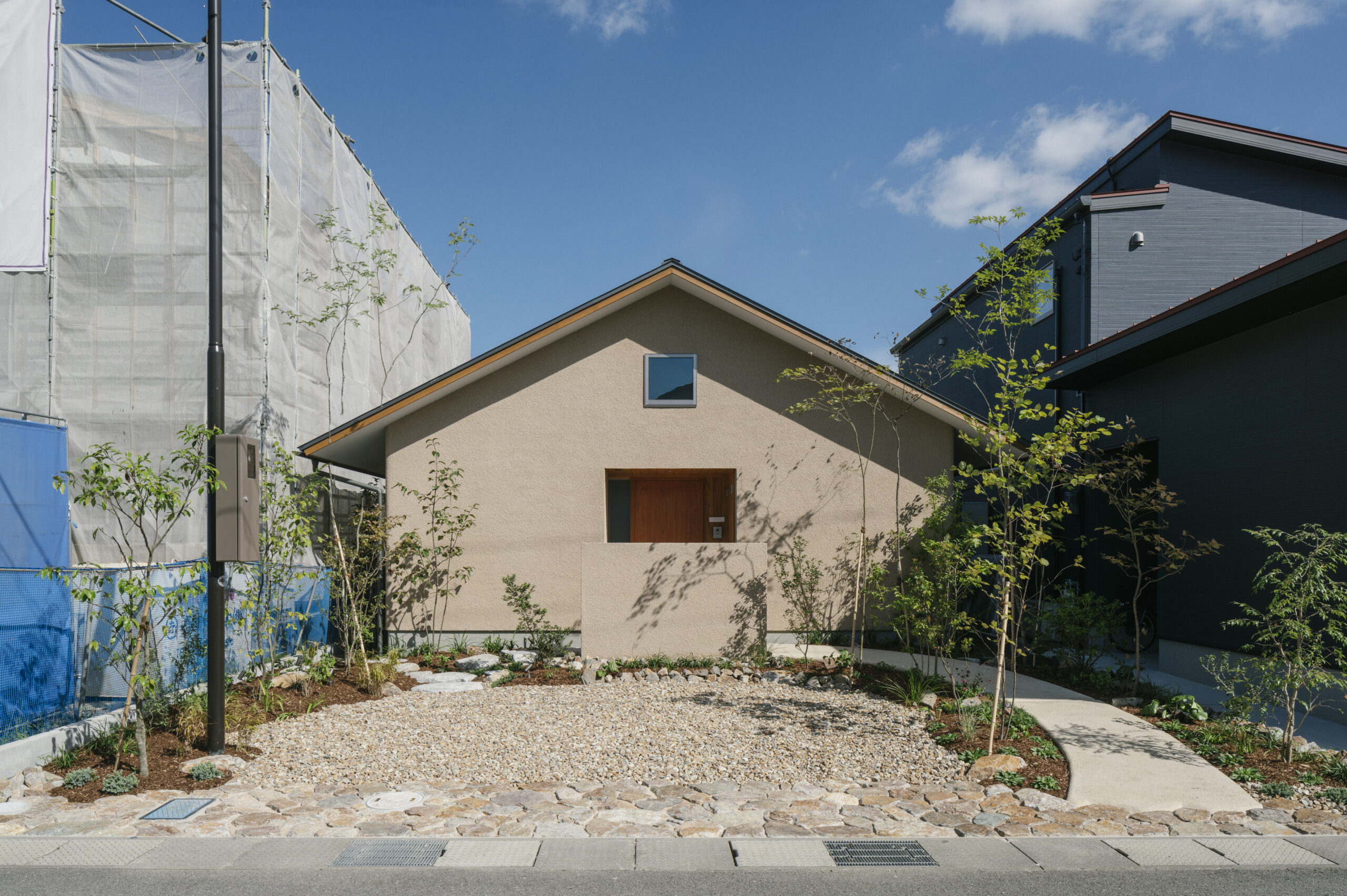 新しい家々が並ぶ街並みのなかでも、まるで以前からそこにあったかのように馴染むシンプルな外観、決して古びない佇まいを目指しました。