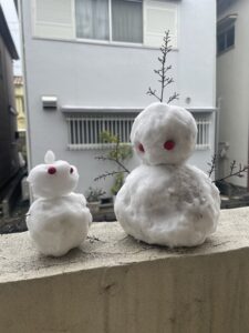 次の日の朝は路面凍結もなく、日常に戻ったのでホッとしつつ、影にそっと置かれている雪だるま(うさぎ?)がとても可愛く見えてほっこりしました。