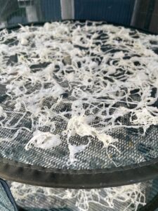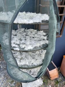 あとは干すだけ?で、いつも干し芋でお世話になっているカゴに広げてみました。