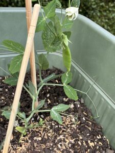 今年もキヌサヤの苗を見つけたのでちょっと時期遅め?と思いましたが育てています。