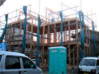 2005年12月10日 / 最終更新日時 : 2005年12月10日 hioki ウッドハウス大窪の家 「H邸上棟式」 本日、H邸の上棟で基礎が出来て、土台を据えて、柱を立てて梁を付け、床を張り、棟木をつけて上棟です。 上棟式は最近簡略化し、上棟後幣串を棟木に飾り、洗い米と塩、お酒で建物の隅清めを行い、祝詞を奏上し完了。 お施主様と施工者の顔合わせをしました。 通し柱に金物取付 1本目の通し柱立て方 棟木を取付上棟です シート看板も付けました