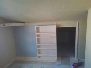 隠し扉のようなスライドシェルフの奥には小屋収納になっています。