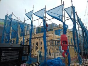 天候に恵まれ屋根仕舞い、屋根防水シート貼りまで完了しました。