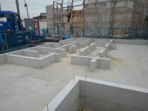 床下エアコンを考慮した立ち上がりの少ない基礎が完成。