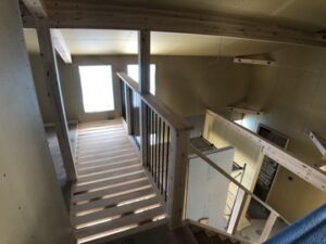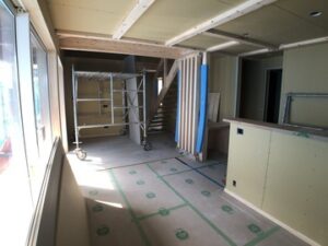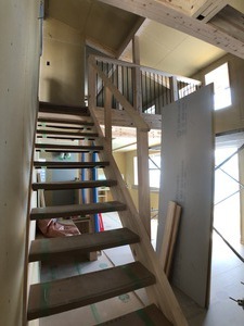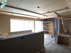2021年5月2日 / 最終更新日時 : 2021年5月4日 admin FREEQ大窪の家 「FREEQ大窪の家」大工工事完了 「FREEQ大窪の家」の大工工事が完了し、仕上げ工事へ。 ダイニング脇に無垢材のカウンターテーブルを設け、カウンター下に床下エアコンを設置予定です。 腰壁手前にキッチンを設置して、対面キッチンとなります。 リビング上部は吹き抜けになっていて、ローリング足場を設置しました。 リビングをより開放的にするためストリップ階段としました。 階段を上がるとキャットウォークを設け、リビング上部が吹き抜けとなっています。 5月末には完成し、6月には完成見学会を開催予定です。