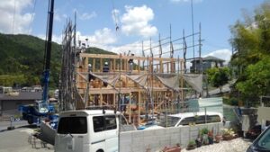 上棟式後、大工さんとスタッフも一緒に記念写真。