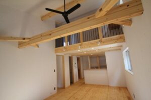 2階ホールからLDKと吹き抜けがあり、これだけ広い家が暖かく快適です。