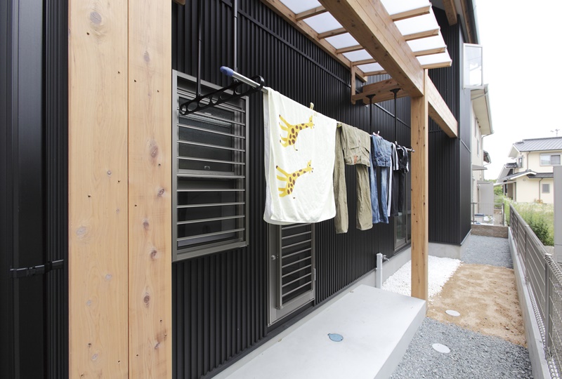 勝手口からは、洗濯スペースがあり、家事動線もじっくり考えられた設計となっています。