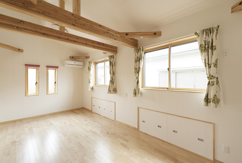 使い勝手の良いデッドスペース利用の収納は必見。子ども部屋はむき出しの梁がナチュラルな雰囲気に。