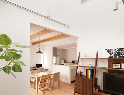 四方を建物に囲まれた敷地ですが、トップライトや吹き抜けで明るい家になりました。