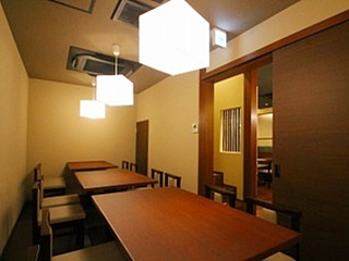 | 温かく居心地のよい店内。カウンター席から見えるキッチンの壁がスタッフ一押しです。 少人数用・大人数用の個室も完備。 |