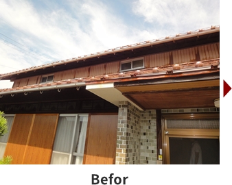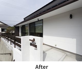 | 築44年ということで、外観も含めて傷みが進んでいた民家。 シンプルな素材でモダンな趣に。屋根も軽いガルバリウム鋼板変え、耐震性も向上しました。 |