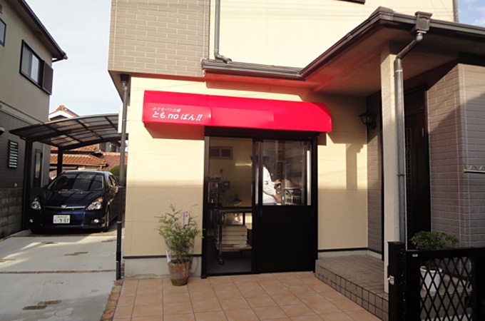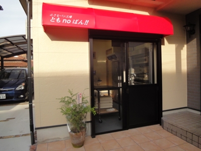 赤いテント看板が目印の小さなパン工場「ともnoパン!!」の完成。