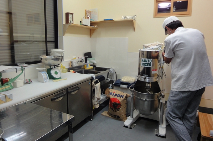 | パンの機械が続々と搬入設置され、ごく普通の和室がパン工場に大変身。 搬入したオーブンは、中がもっちり、外がカリッととても美味しいパンが焼けるそうです。 |