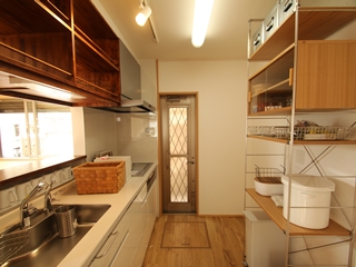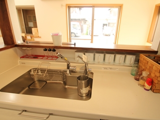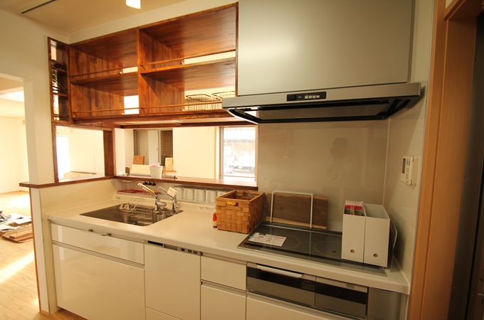 調味料や小物を入れるスペースを造作工事で確保しました。