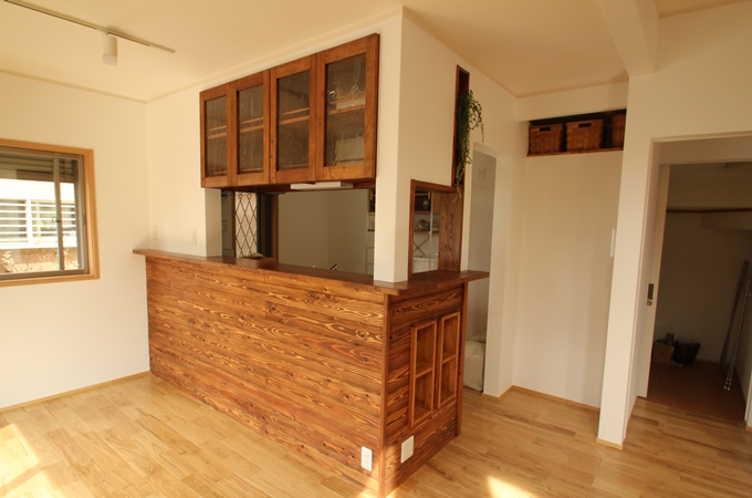 アンティックなガラスを入れたオリジナル建具でよりいっそう雰囲気が良くなりました。