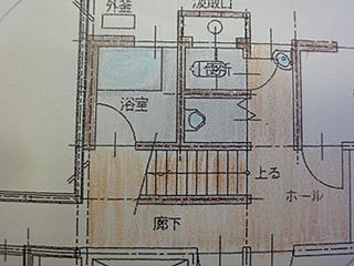 | そして、提案した間取りは、階段下に洗濯スペースとして確保し、洗面脱衣スペースもが充実。 以前の通路部分にトイレを配置することで、使いやすくなります。 |